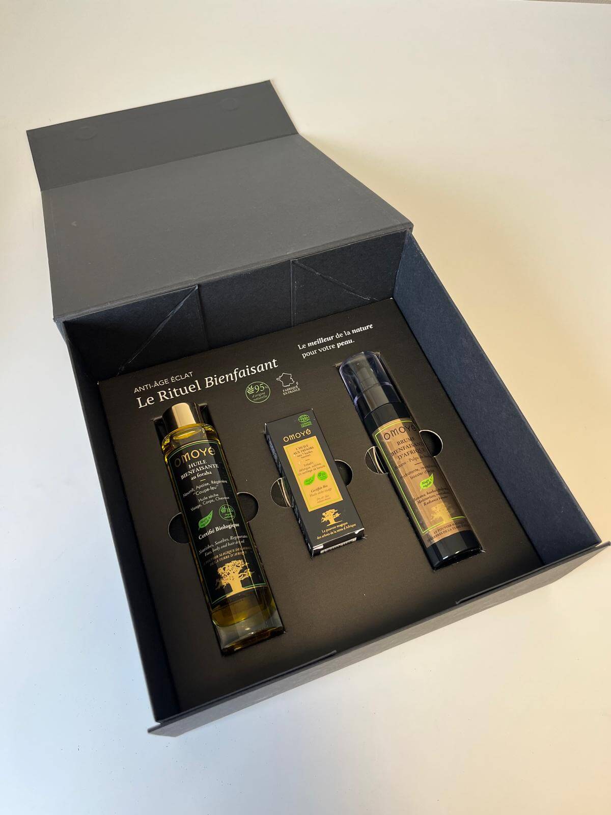 Le choix des matériaux, des systèmes de fermeture et des finitions est entièrement libre et pensé pour correspondre à l’univers visuel de la marque, au niveau de gamme du produit et à ses valeurs associées (artisanat, naturalité, luxe, innovation, tradition…). Il peut s’agir d’un coffret cadeau haut de gamme, d’un emballage de vente, d’un pack promotionnel ou encore d’un conditionnement de présentation pour salons, points de vente ou partenaires commerciaux.