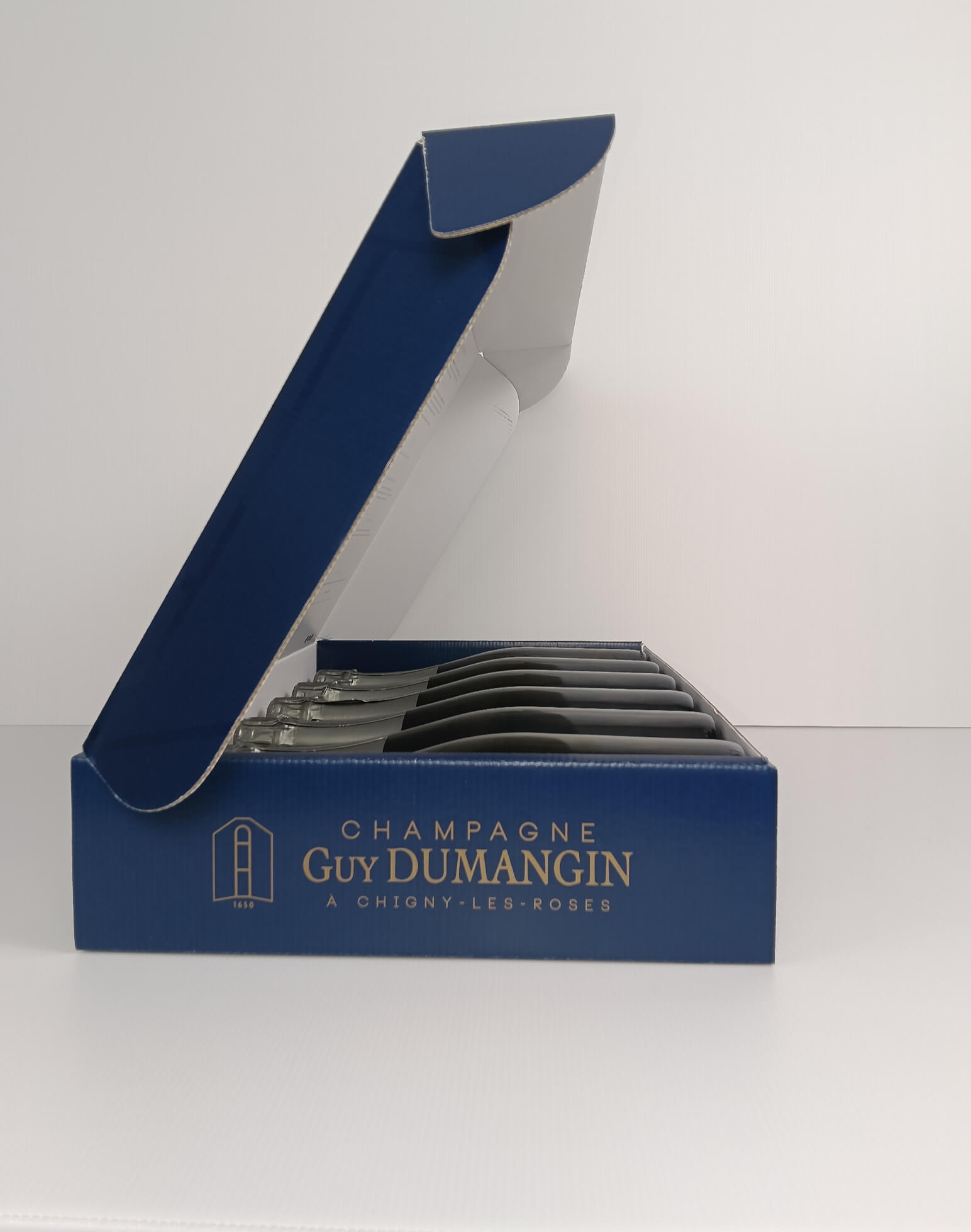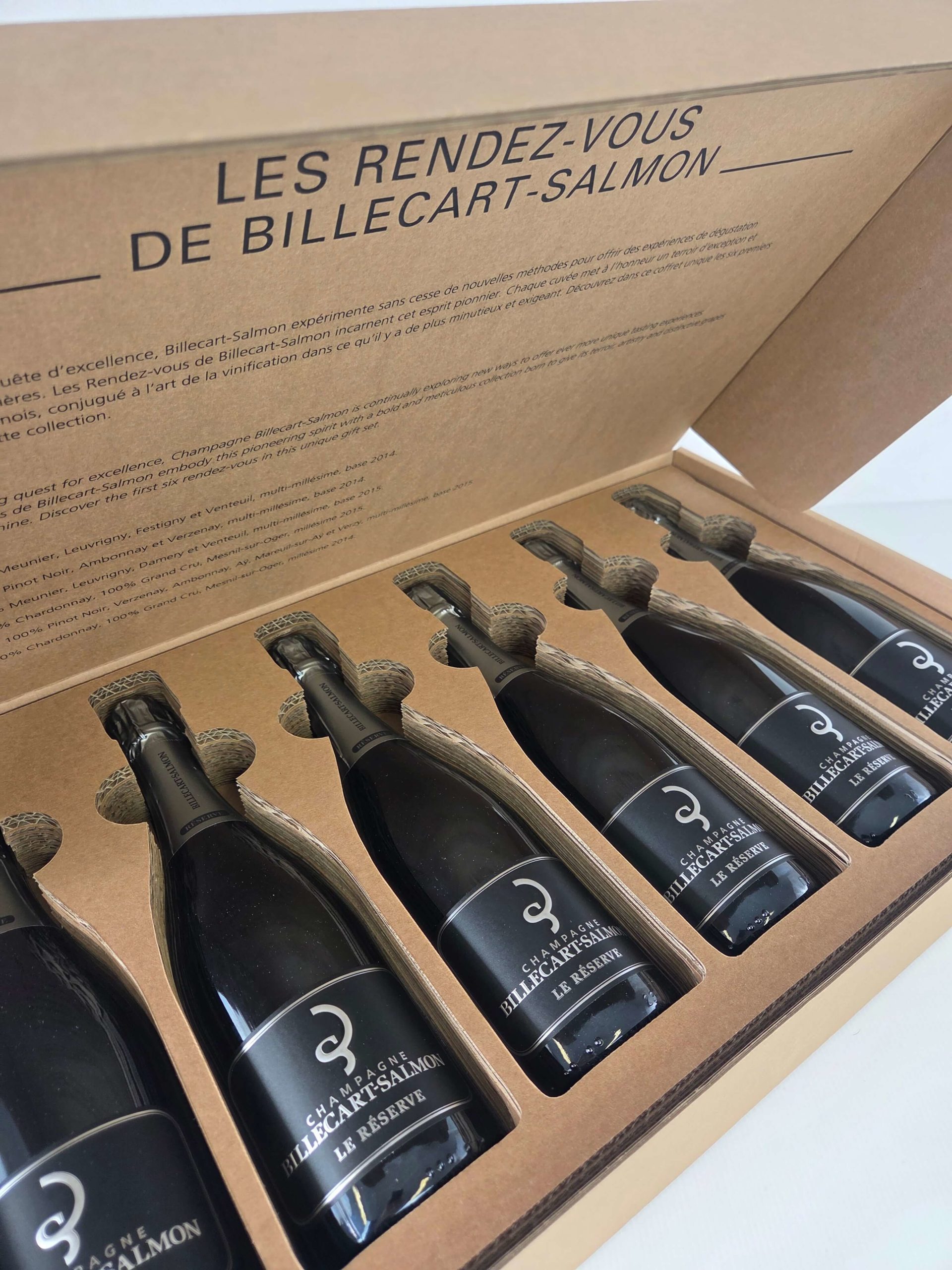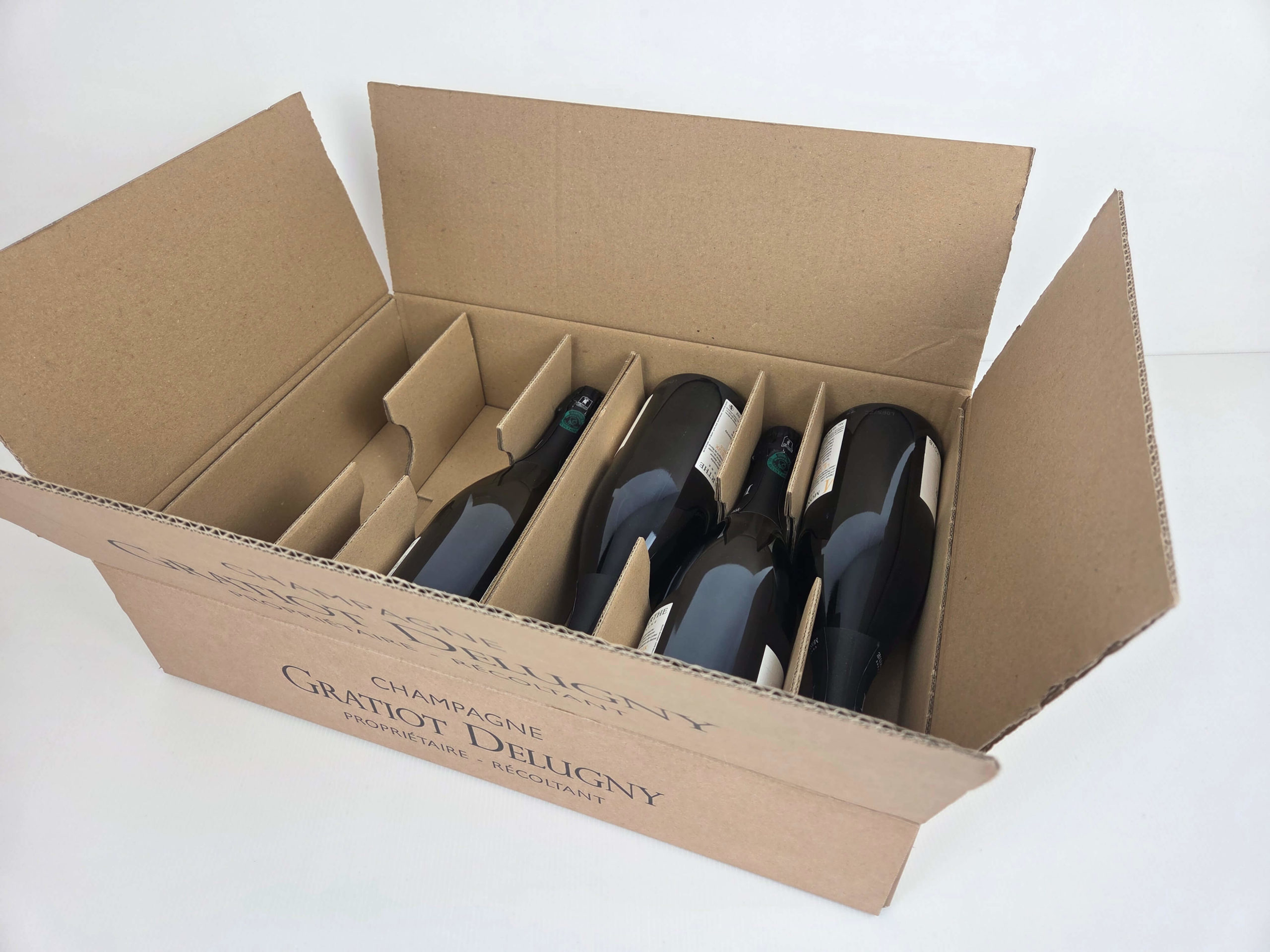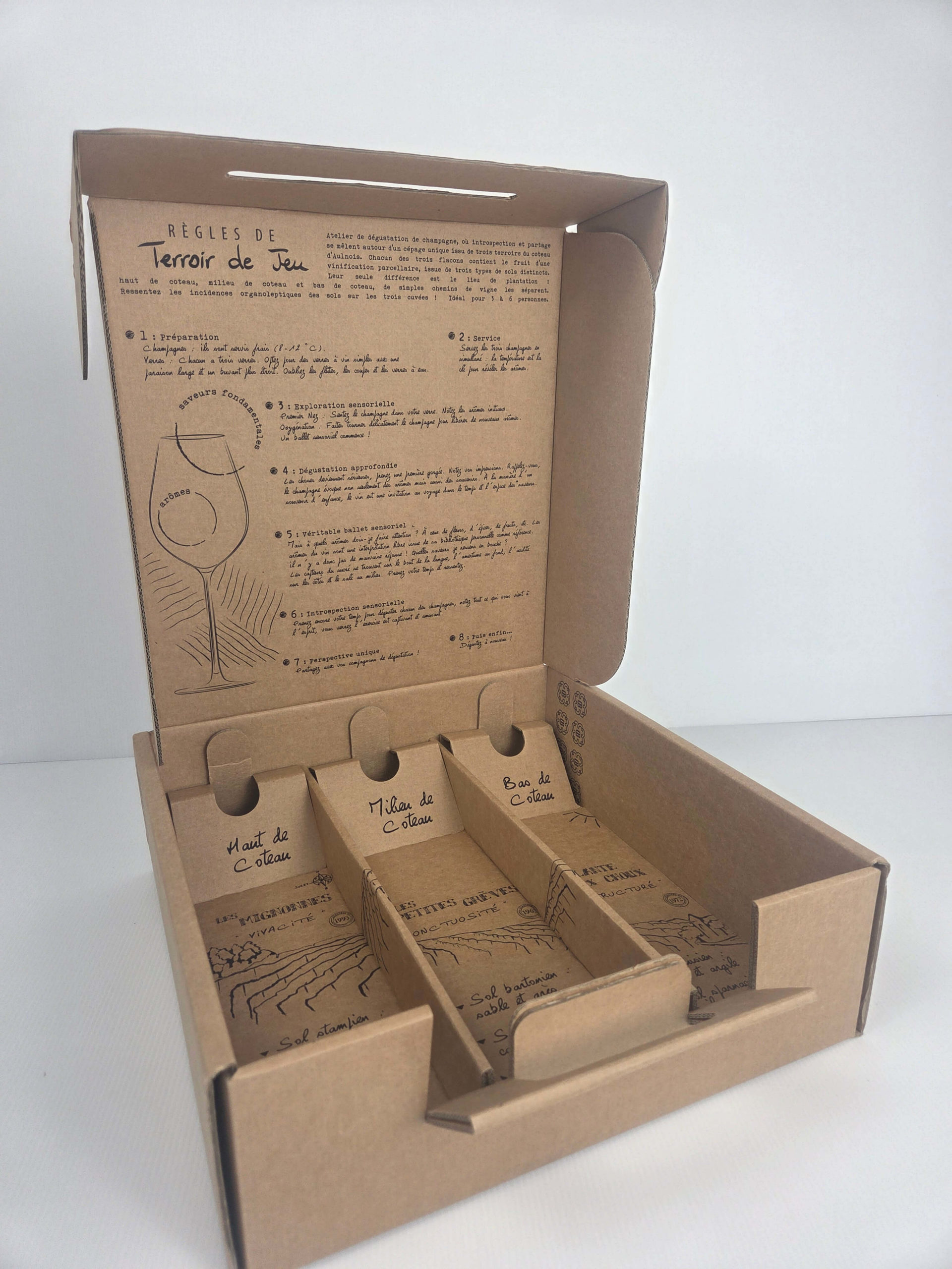 Le coffret vins et spiritueux est généralement fabriqué à partir de matériaux rigides et valorisants tels que le carton compact haut grammage, le bois, le polypropylène alvéolaire ou encore des matières innovantes comme les mousses rigides thermoformées. Son objectif est double : protéger les bouteilles pendant leur transport et renforcer leur mise en scène à l’ouverture. Il peut contenir une seule bouteille ou plusieurs, positionnées verticalement ou horizontalement, parfois accompagnées d’accessoires (verres, bouchons, tire-bouchon, fiches de dégustation, etc.). L’intérieur du coffret est généralement conçu avec un calage sur mesure, qui épouse la forme de chaque élément pour éviter les chocs, les frottements ou les déplacements. Ce calage peut être en mousse découpée, en carton alvéolaire, en niche thermoformée ou même en textile tendu pour un rendu plus luxueux. À l’extérieur, le coffret peut adopter des finishes graphiques personnalisées, allant de l’impression offset haut de gamme à la sérigraphie, en passant par la dorure à chaud, le gaufrage ou les marquages à sec.